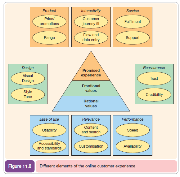 You can see that creating effective online experiences is a challenge since there are many practical issues to consider which we present in Figure 11.8. This is based on a diagram by de Chernatony (2001) who suggested that delivering the online experience promised by a brand requires delivering rational values, emotional values and promised experience (based on rational and emotional values). The factors that influence the online customer experience can be presented in a pyramid form of success factors as is shown in Figure 11.8 (the different success factors reflect current best-practice and differ from those of de Cher- natony). The diagram also highlights the importance of delivering service quality online, as has been indicated by Trocchia and Janda (2003).