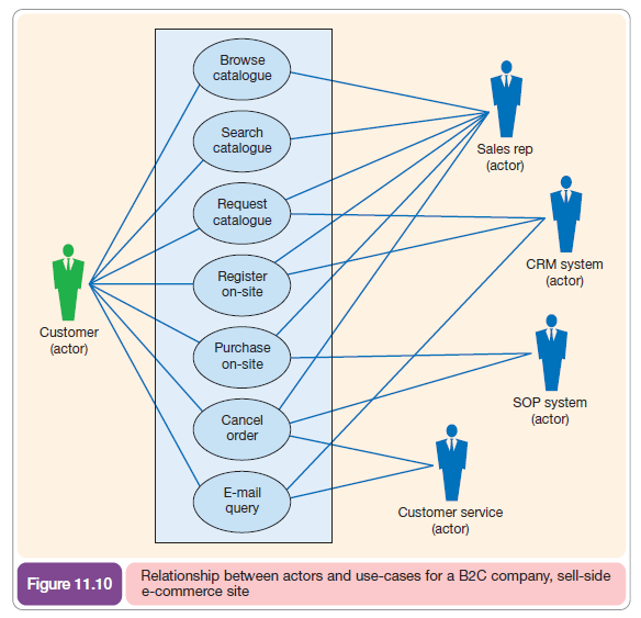 Actors are those objects which are involved in using or interacting with a system. They are not part of the system. The obvious actors are the users of a system. In a customer service application the actors may be a customer and the customer service person at the company. When performing process analysis to define use-cases we ask questions such as ‘Who are the actors for this process?’, ‘What services do these actors provide?’, ‘What are the actors’ tasks?’ and ‘What changes do they make to the status of the overall process?’. Actors are typically application users such as customers and employers. They may add information to the system or receive it through reporting facilities. Note that an employee who has several roles such as a manager role and an administrator role would be represented by two different actors.