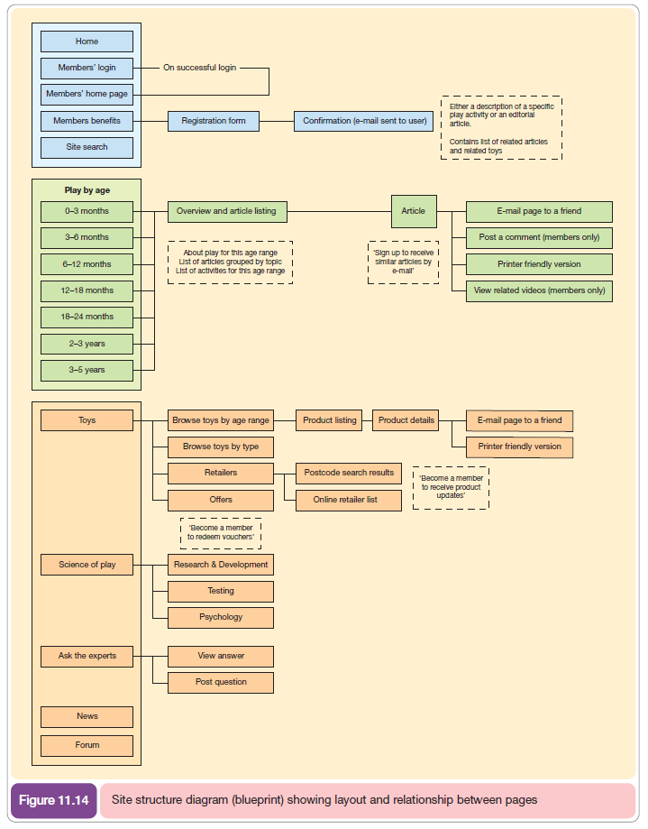 Devising a site that is easy to use is critically dependent on the design of the site navigation scheme. Hoffman and Novak (1997) stress the importance of the concept of‘flow’ in governing site usability. ‘Flow’ essentially describes how easy it is for the users to find the information they need as they move from one page of the site to the next, but it also includes other interactions such as filling in on-screen forms. Rettie (2001) summarizes the meaning of flow in an online context and gives guidelines on how this concept can be used to enhance the visitor experience. The concept of flow can be better understood by considering the statements describing flow used originally by Csikszentmihalyi and more recently by Rettie’s research to test for a flow experience on a web site: