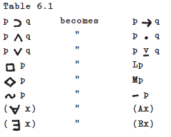 Specific topics require other signs. It is not possible to give general instructions for these, although we can provide some examples here. For some projects in logic, mathematics, or nonEuropean languages, you can only write these signs by hand (unless you own an IBM Selectric electric typewriter, into which you can insert different typeballs that allow you to type different alphabets). This is certainly difficult work. However, you may find that your typewriter can produce alternative graphemes. Naturally, you will have to ask your advisor if you can make these substitutions, or consult the critical literature on your topic. As an example, table 6.1 gives a series of logic expressions (on the left) that can be transcribed into the less laborious versions on the right.