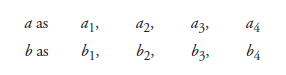 - In the first column, the factor is common, and the only variables are the levels of b: bi, b>2, b3, and b4.