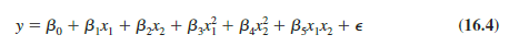 If the original data set consists of observations for y and two independent variables x1 and x2, we can develop a second-order model with two predictor variables by setting z1 = x1, z2 = x2, z3 = x²1, z4 = 4 and z5 = x1x2 in the general linear model of equation (16.1). The model obtained is