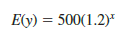 Thus, for x = 1, E( y) = 500(1.2)1 = 600; for x = 2, E( y) = 500(1.2)2 = 720; and for x = 3, E( y) = 500(1.2)3 = 864. Note that E( y) is not increasing by a constant amount in this case, but by a constant percentage; the percentage increase is 20%.
