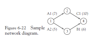 Another limitation associated with traditional approaches to project management is that the dependency between resources and tasks is often ignored. To illustrate this, consider the network diagram shown in Figure 6-22. According to the figure, the activities emanating from node 1 require resource A, while the activities emanating from nodes 2 and 3 require resources C and B, respectively. Using traditional approaches to project management, two paths would be identified: A1‐C1 with a duration of 17 days and A2‐B1 with a duration of 11 days. Taking this approach a step further we would conclude that path A1‐C1 is the critical path.