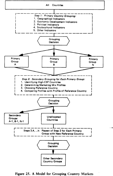 Figure 25 offers a sequential model for grouping country markets. It allows managers to determine, first, broad primary groups and, second, secondary groups within each primary group.5
