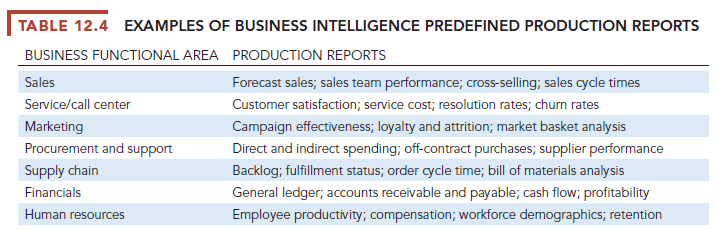 - Production reports: These are predefined reports based on industry- specific requirements (see Table 12.4).