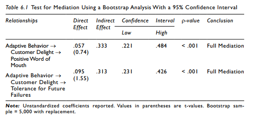 Your mediation test should always compliment the findings from the structural analysis. The structural results will let the reader know the specifics of the A path and B path. When pre- senting the mediation part of the analysis, it is a good idea to present the indirect effect, the lower and upper bound confidence intervals, the significance of the indirect effect, and the direct effect. By including all of this information, the reader can fully evaluate the mediation properties of your results.
