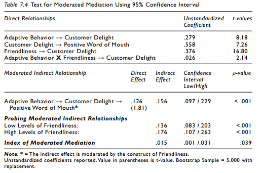 There is a lot of information to present in a moderated mediation test. Here is one example of how to present your results.You need to include the structural results, the tests of the indirect effect, the probing of the indirect effect, and the index of moderated mediation.