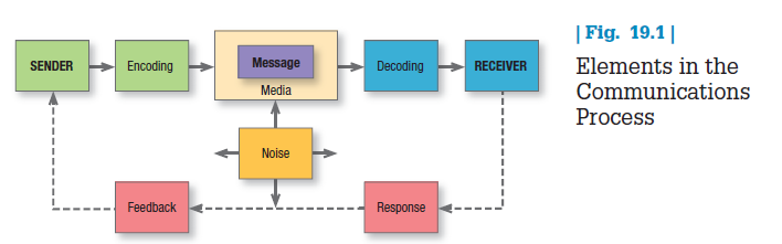 MACROMODEL OF THE COMMUNICATIONS PROCESS Figure 19.1 shows a macromodel with nine key factors in effective communication. Two represent the major parties—sender and receiver. Two represent the major tools—message and media. Four represent major communication functions—encoding, decoding, response, and feedback. The last element in the system is noise, random and competing messages that may interfere with the intended communication.