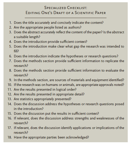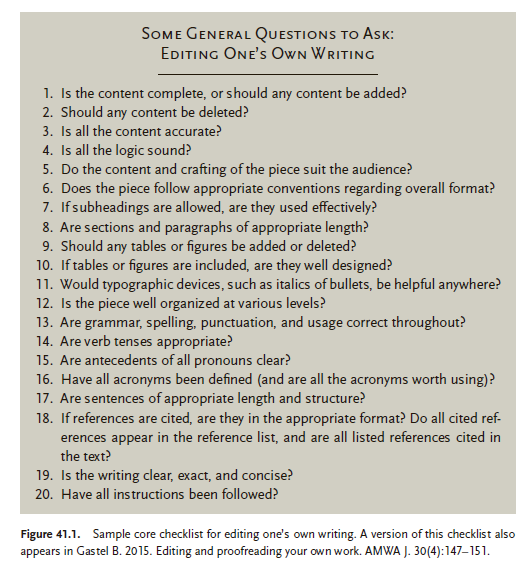 Figure 41.2. Example of a checklist for editing one’s own scientific paper. Such a checklist could