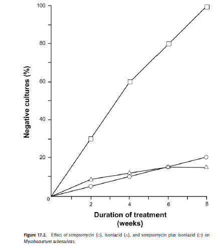 Examine Table 17.1 and Fig. 17.2, both of which record exactly the same data. Either format would be acceptable for publication, but Fig. 17.2 clearly seems superior to Table 17.1. In the figure, the synergistic action of the two- drug combination is immediately apparent. Thus, the reader can quickly grasp the significance of the data. It also appears from the graph that streptomycin is more effective than is isoniazid, although its action is somewhat slower; this aspect of the results is not readily apparent from the table.