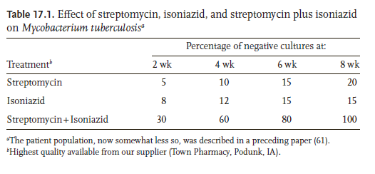 Examine Table 17.1 and Fig. 17.2, both of which record exactly the same data. Either format would be acceptable for publication, but Fig. 17.2 clearly seems superior to Table 17.1. In the figure, the synergistic action of the two- drug combination is immediately apparent. Thus, the reader can quickly grasp the significance of the data. It also appears from the graph that streptomycin is more effective than is isoniazid, although its action is somewhat slower; this aspect of the results is not readily apparent from the table.