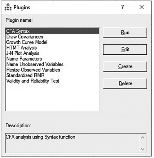 Figure 10.58 CFA Syntax Listed in Plugin Window