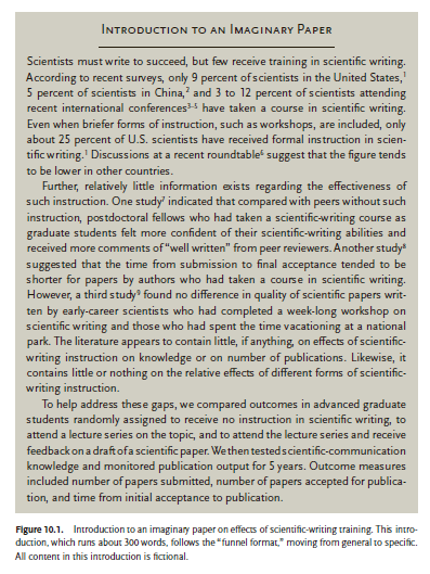 The first four guidelines for a good introduction need little discussion, being reasonably well accepted by most scientist-writers, even beginning ones. It is important to keep in mind, however, that the purpose of the introduction is to introduce the paper. Thus, the first rule (definition of the problem) is the cardinal one. If the problem is not stated in a reasonable, understandable way, readers will have no interest in your solution. Even if the reader labors through your paper, which is unlikely if you haven’t presented the problem in a meaningful way, he or she will be unimpressed with the brilliance of your solution. In a sense, a scientific paper is like other types of journalism. In the introduction, you should have a “hook” to gain the reader’s attention. Why did you choose that subject, and why is it important?