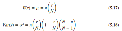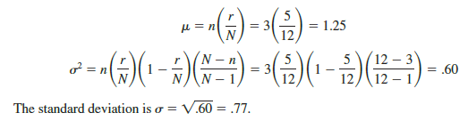 In the preceding example n = 3, r = 5, and N = 12. Thus, the mean and variance for the number of defective fuses are