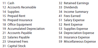 The company’s chart of accounts is useful in determining which accounts are affected by the transaction. The chart of accounts for Kelly Consulting is as follows:
