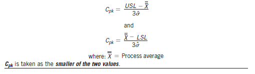 The second method is used when the process average is not assumed to be coincident with the specification average and is denoted as Cpk.