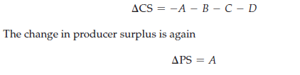 The change in total surplus, ACS + APS, is therefore -B – C. Again, there is a deadweight loss—consumers lose more than producers gain.