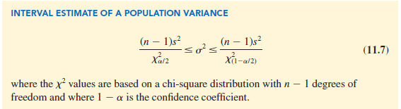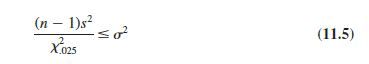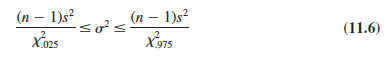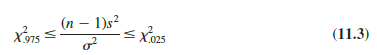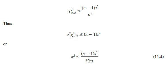Because expression (11.3) is true for 95% of the (n – 1) s2/σ2 values, expression (11.6) provides a 95% confidence interval estimate for the population variance s2.
