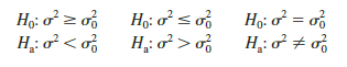 Using s0 to denote the hypothesized value for the population variance, the three forms for a hypothesis test about a population variance are as follows: