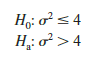Let us consider the following example. The St. Louis Metro Bus Company wants to promote an image of reliability by encouraging its drivers to maintain consistent schedules. As a standard policy, the company would like arrival times at bus stops to have low variability. In terms of the variance of arrival times, the company standard specifies an arrival time variance of 4 or less when arrival times are measured in minutes. The following hypothesis test is formulated to help the company determine whether the arrival time population variance is excessive.