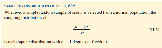 Because the sampling distribution of (n – 1)s 2/σ2 is known to have a chi-square distribution whenever a simple random sample of size n is selected from a normal population, we can use the chi-square distribution to develop interval estimates and conduct hypothesis tests about a population variance.