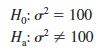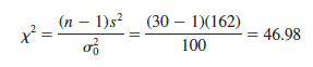 The sample of 30 examination scores provided a sample variance s2 = 162. The value of the chi-square test statistic is as follows: