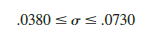 Taking the square root of these values provides the following 95% confidence interval for the population standard deviation.