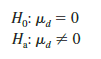 Let μd = the mean of the difference in values for the population of workers. With this notation, the null and alternative hypotheses are rewritten as follows.