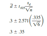Substituting the sample results d = .30, sd = .335, and n = 6 into equation (10.9), we