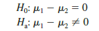 Suppose employees at a manufacturing company can use two different methods to perform a production task. To maximize production output, the company wants to identify the method with the smaller population mean completion time. Let m1 denote the population mean completion time for production method 1 and m2 denote the population mean completion time for production method 2. With no preliminary indication of the preferred production method, we begin by tentatively assuming that the two production methods have the same population mean completion time. Thus, the null hypothesis is H0: μ1 – μ2 = 0. If this hypothesis is rejected, we can conclude that the population mean completion times differ. In this case, the method providing the smaller mean completion time would be recommended. The null and alternative hypotheses are written as follows.