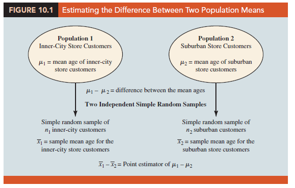 Figure 10.1 provides an overview of the process used to estimate the difference between two population means based on two independent simple random samples.