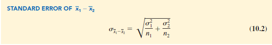 As with other point estimators, the point estimator xi — x2 has a standard error that describes the variation in the sampling distribution of the estimator. With two independent simple random samples, the standard error of xi— x2 is as follows: