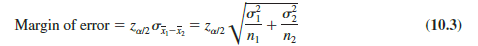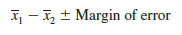 With the sampling distribution of xi — x2 having a normal distribution, we can write the margin of error as follows: