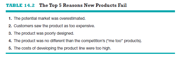 There is also a common set of reasons that new products fail, as articu- lated by eSeller Media and shown in Table 14.2.2 It behooves entrepreneurs to be aware of these reasons and to work hard to prevent new product failures as a result of poor execution in these areas.