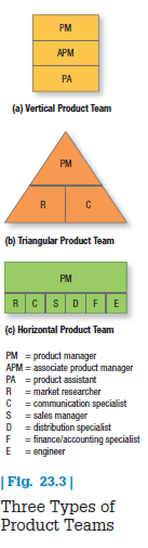 A second alternative in a product-management organization is product teams. There are three types: vertical, triangular, and horizontal (see Figure 23.3). The triangular and horizontal product-team approaches let each major brand be run by a brand-asset management team (BAMT) consisting of key representatives from functions that affect the brand’s performance. The company consists of several BAMTs that periodically report to a BAMT directors committee, which itself reports to a chief branding officer. This is quite different from the way brands have traditionally been handled.
