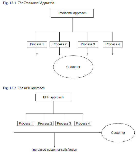 Figure 12.1 shows the traditional approach, which is linear, sequential and partial, and Figure 12.2 shows the re-engineering approach, which is parallel, integrative and customer-oriented.