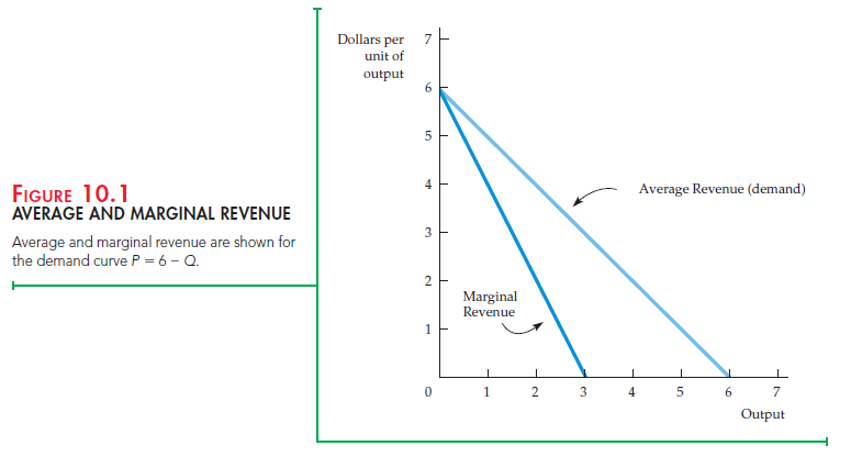 Figure 10.1 plots average and marginal revenue for the data in Table 10.1. Our demand curve is a straight line and, in this case, the marginal revenue curve has twice the slope of the demand curve (and the same intercept).2