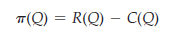 We can also see algebraically that Q* maximizes profit. Profit p is the difference between revenue and cost, both of which depend on Q: