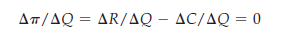 But AR / AQ is marginal revenue and AC / AQ is marginal cost. Thus the profit-maximizing condition is that MR – MC = 0, or MR = MC.