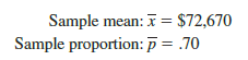 In the preceding section we said that the sample mean X is the point estimator of the population mean m, and the sample proportion p is the point estimator of the population proportion p. For the simple random sample of 30 EAI managers shown in Table 7.2, the point estimate of m is X = $71,814 and the point estimate of p is p = .63. Suppose we select another simple random sample of 30 EAI managers and obtain the following point estimates: