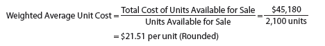 The weighted average cost method uses the weighted average unit cost for determining the cost of merchandise sold and the ending merchandise inventory. If purchases are relatively uniform during a period, the weighted average cost method provides results that are similar to the physical flow of goods.