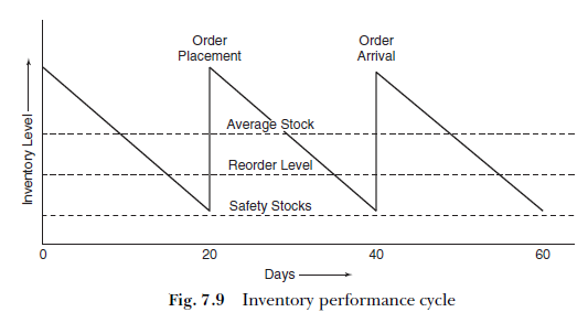 To meet the desired level of customer service, the average level of inventory stocks to be maintained at any point of time is determined in terms of the number of days of sales value. The average inventory includes the base-level inventory, safety stock inventory and in-transit inventory (Figure 7.9).