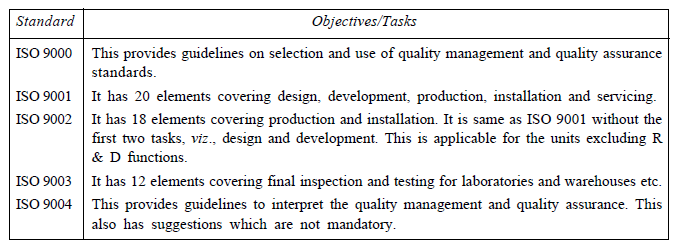 The objectives of ISO 9000 series is listed in Table 6.1.