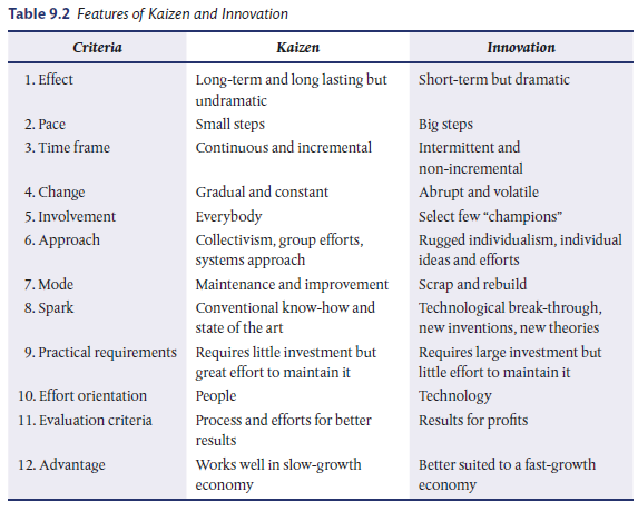 Analysing Table 9.3, we find that the West has been stronger in terms of innovation and Japan has been stronger on the Kaizen front. These differences are also reflected in the different social and cultural heritages such as the Western educational system’s stress on individual initiative and creativity as against the Japanese educational system’s emphasis on harmony and collectivism.
