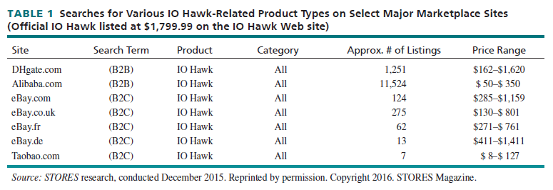 In addition to the various types of luxury-branded apparel and accessories—typically among the most counterfeited goods that are sold in the Web and through the mobile marketplace— NetNames found that IO Hawk hoverboards and Stars Wars merchandise, including an app-enabled BB-8 and the Jedi Master Lightsaber, were among the most popular fakes during the 2015 holiday season. This was discouraging to retailers selling authentic merchandise. See Table 1.
