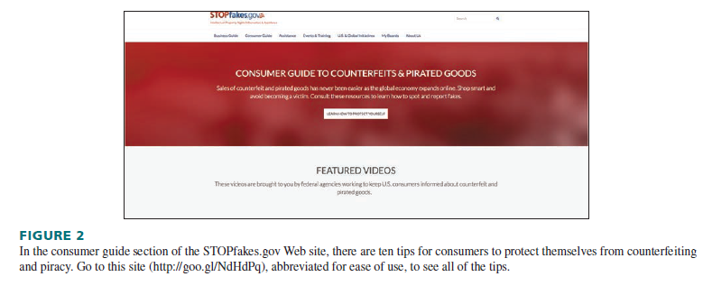 According to the U.S. government’s STOPfakes Web site (www .stopfakes.gov), “STOPfakes.gov was launched to serve as a one-stop shop for U.S. government tools and resources on intellectual property rights (IPR). The federal agencies behind STOPfakes.gov have developed a number of resources to educate and assist businesses, particularly small and mediumsized enterprises (SMEs), as well as consumers, government officials, and the general public.”
