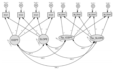 Figure 9.20 Example of a Latent Growth Curve Model With Two Domains