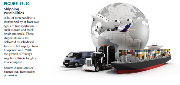 - What transportation form will be used? Are multiple forms required (such as manufacturer trucks to retailer warehouses and retailer trucks to individual stores)? See Figure 15-10.