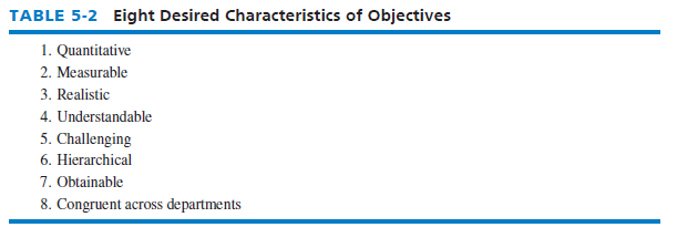 Table 5-2 reveals the desired characteristics of objectives, and Table 5-3 summarizes the benefits of having clear objectives.